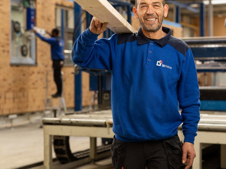 In de geïndustrialiseerde fabriek houdt hij zich bezig met het monteren van kozijnen in de prefab gevels. Moeilijk vindt hij zijn werk niet meer, daarvoor doet hij het al te lang. Met zijn ervaring en rustige houding is hij een vaste waarde binnen het team. Larbi is ook iemand die jongere collega’s niet alleen het vak leert, maar ook levenslessen meegeeft. “Ik help ze niet alleen met werken, maar ook met andere dingen in het leven, zoals belastingaangifte doen. Dat hoort er ook bij.”